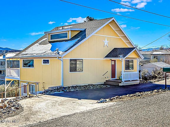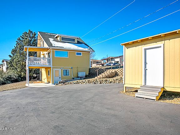 This home is on a double lot, great for anyone who would love a mother in law / guest qtrs... Or extra income rental:) Level access from the ashfalt circular driveway. Carport can be easy parking for your the guest qtrs... Includes a metal garage/ workshop with garage door opener and power. Wonderful Garden Shed for your garden projects or hobby shop...2nd level with a large master, full bath, roomy closets for storage. Beautiful kitchen livingroom and dining area as well...Third level loft is very large and could have potential for additional 4th bedroom by adding a partion wall. Includes a 3/4 bathroom for your convenience too.Lovely partially covered deck located off the livingroom to enjoy panoramic distant views of our Beautiful Prescott Bradshaw Moutains!