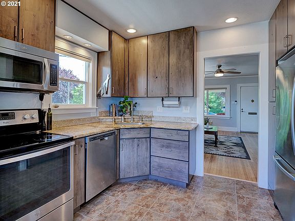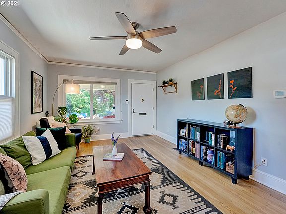 Charming old bungalow with modern comforts. This light drenched home maintains its original oak floors, generous windows, inviting front porch and period details, while also boasting a stylishly remodeled main floor bath, updated bright kitchen with cozy breakfast nook, and amazing flexible spaces in the finished basement, oversized garage and outdoor oasis. Convenient to the Max Line and treasured Kenton neighborhood happenings. A/C! [Home Energy Score = 7. HES Report at https://rpt.greenbuildingregistry.com/hes/OR10192004]