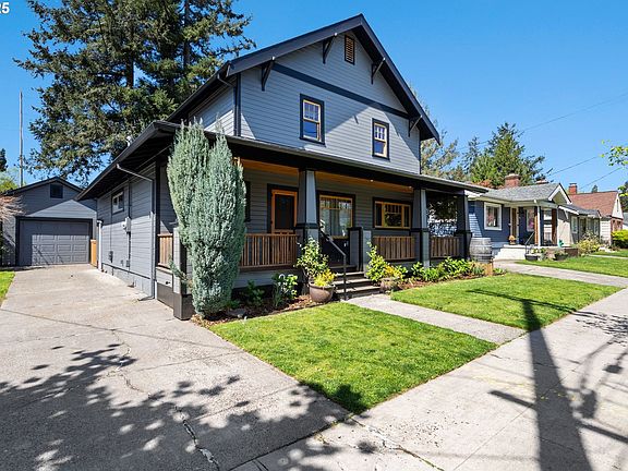 Welcome to this beautifully reimagined Craftsman home, set in one of Portland’s most sought-after neighborhoods. Rebuilt from the foundation up in 2005–2006, this 4-bedroom, 3-bath gem blends timeless character with thoughtful modern upgrades, covered front porch and cost-efficiency. Step into a home that’s move-in ready with a NEW roof, NEWly stained rear deck, NEW sewer line, NEW interior paint and carpet, all recently completed in 2025. Fresh exterior paint (2024) is an additional perk with a brand-new 2024 high-efficiency boiler with 2-zone radiant heat, 2019 mini split system, air conditioning, and a wood-burning fireplace ensuring comfort in every season. Inside, enjoy Brazilian cherry hardwoods, premium Doug Fir trim, and high ceilings. The kitchen is outfitted with granite slab countertops, reclaimed Douglas Fir bar top, stainless appliances, and Rejuvenation copper lighting—offering both style and functionality. A main-level bedroom with adjoining bath opens to a mahogany deck, perfect for indoor-outdoor living. Upstairs, the primary suite features vaulted ceilings, a walk-in closet, and a tile-accented bath. A generous loft area offers flexibility as a home library, workout space, or second living area. An additional upstairs bedroom includes a lofted nook—perfect for reading, storage, or play. Outside, the fully fenced backyard is a Pacific Northwest retreat with mature Doug Fir trees, raised garden beds, vibrant perennials, established blueberries and raspberries, and a space ideal for fire pit nights. A detached garage with barn doors, workbench, and cabinetry provides versatile flex space for a gym, studio, or workshop. Chicken coop included. Located just blocks from farmers markets, food cart pods, local cafés, Trader Joe’s, Whole Foods, and MAX transit—this home delivers the full Portland lifestyle in a walkable, community-centered setting. [Home Energy Score = 7. HES Report at https://rpt.greenbuildingregistry.com/hes/OR10237472]
