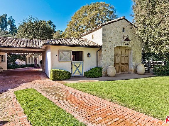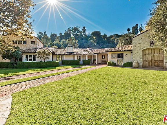 1525 Old Oak Road is a stunning masterpiece respectful to the original 1941 Cliff May equestrian estate but reflecting elements for a contemporary lifestyle, this magical and soulful courtyard Montecito style hacienda in Sullivan Canyon has been restored with meticulous detail and sublime style. Set amidst extraordinary gardens and pathways the estate is a gated, super- private retreat on a huge, tree-studded lot. The intimate and comfortable five bedroom, seven bathroom home, which encircles the pool, patios and gardens, feels perfectly scaled and presents uncharacteristic elegance and drama. Additionally, there is a large living room, separate den, elegant dining room and superb kitchen. Backyard features a gorgeous pool with spa, magical firepit, stable & paddock. The property echoes a villa in a faraway land yet is moments from Brentwood shops, markets, restaurants and the Palisades Village.