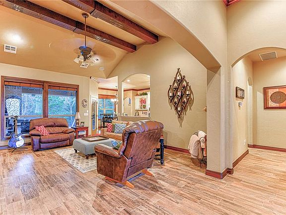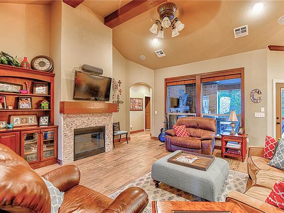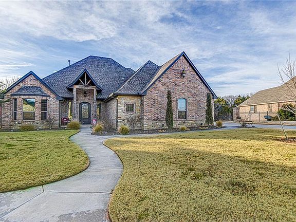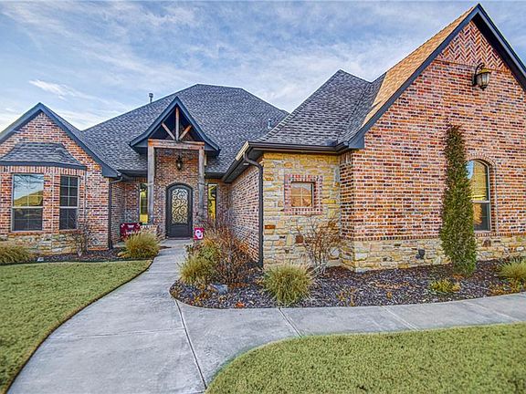 This Edmond Luxury home has it all! As you step in you will be greeted by a gorgeous living room featuring vaulted ceilings,stained beams and a fireplace. The kitchen creates a seamless cooking experience with a copper farmhouse sink, a copper prep sink in the center island and an auto light in the pantry. Inside the master retreat you will find vaulted ceilings and access to the patio along with a luxurious en suite including his and her vanities, a jetted tub, and an expansive master closet that connects to the utility room for convenience. A secondary master bedroom includes its own en-suite with a tile shower- perfect for guests. A theatre room and formal study complete the floor plan to put this home over the top! If the inside of this home didn't win over your heart, the backyard is sure to do the trick with its extended covered concrete patio, private in ground pool, and convenient access to a half bath. This home is the perfect place to make memories that will last forever.