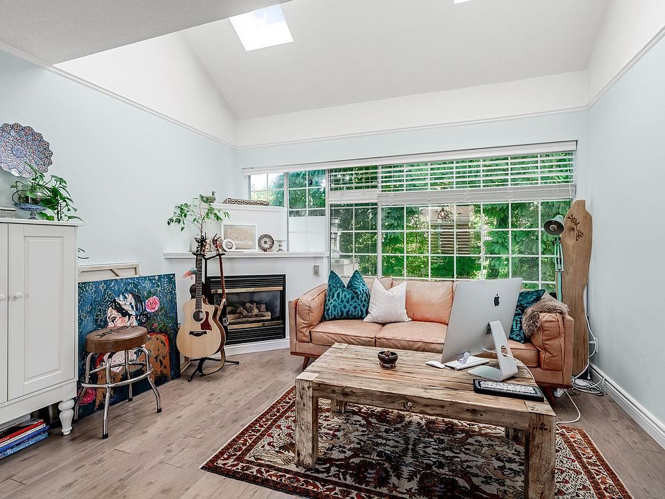 Located on a quiet tree lined street 1 block off Davie & 2 blocks off Denman, this fully renovated Penthouse home is an oasis in the city. Vaulted ceilings & skylights in the living room & kitchen let all of the the natural light pour through. The 350sf wrap around balcony is perfect for swinging in a hammock, tending to the garden as well as entertaining guests. Wide plank hardwood floors throughout add to the serenity of the home, custom blinds cover the North, East & Southern windows and a gas fireplace in the corner of the room offers warmth & comfort for those rainy Vancouver evenings. Building amenities include updated exercise room & picturesque inner courtyard. This property is a must see. Book your private showing today!