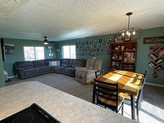 Cozy country living just out of town! Enjoy the best of both worlds in this charming 3-bedroom, 2-bath home located outside city limits on just over 2 acres of peaceful, usable land. With fresh updates throughout—including new interior paint, modern lighting fixtures, new appliances, and plush carpet in two bedrooms and the bonus family room—this home is move-in ready and full of warmth. The open-concept living and dining area is full of natural lighting and includes a sliding door to the back yard. Step outside to find a fenced yard with garden space, established fruit trees, and ample parking. The detached shop is a standout, complete with power and heat—perfect for projects, hobbies, or extra storage. The garage area attached to the shop has been fully refreshed with new drywall, paint, lighting, and an epoxy floor. Whether you’re looking for room to spread out, space to grow a garden, or just a little more peace and quiet without giving up convenience, this property checks all the boxes.