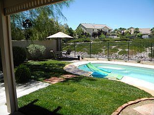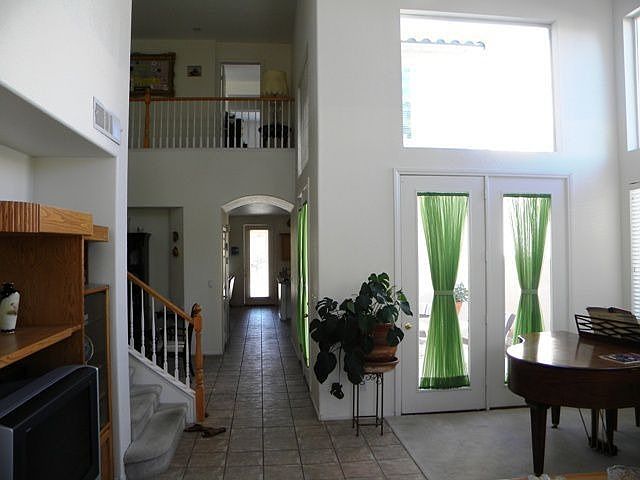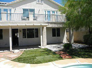 Double oak doors with leaded glass in front. huge kitchen, nice open floor plan, covered patio with A balcony. home backs to open area landscaped and views of Las Vegas Strip and mountains.