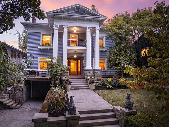 Maurice Winter was a import/export tycoon who built his dream house in 1911 to be a showpiece with the very best adornments and a gracious floor plan allowing for everything from intimate gatherings to grand parties. Mr. Winter's intentions have lasted for over a century, alluring vibrant and fascinating residents who celebrate architecture, art and entertaining. From the Corinthian columns at the front porch to the living room with an inviting Turkish tile fireplace and the formal dining room's box beam ceilings, the home has hosted large scale parties and literary geniuses. Owner Chelsea Cain is a NY Times best selling author and her husband, Marc Mohan, was The Oregonian film critic for many years. A home theater was created in 2008 when the basement floor was excavated for sunken tiered seating. The finished 3rd floor aerie is the ideal location for a creative studio with a great room, bedroom, full bath and skylights. The well appointed kitchen has an adjacent family room and casual eating area. French doors open to a cedar deck with trellised concord grapes planted by Maurice Winter. The Colonial Heights neighborhood is a popular location due to its proximity to SE Hawthorne shops, cafes, bakeries, food carts and an array of services. Be sure to check out the two unicorn guardians at the front walkway and the former pony stall in the lower level of the home! [Home Energy Score = 1. HES Report at https://rpt.greenbuildingregistry.com/hes/OR10220958]