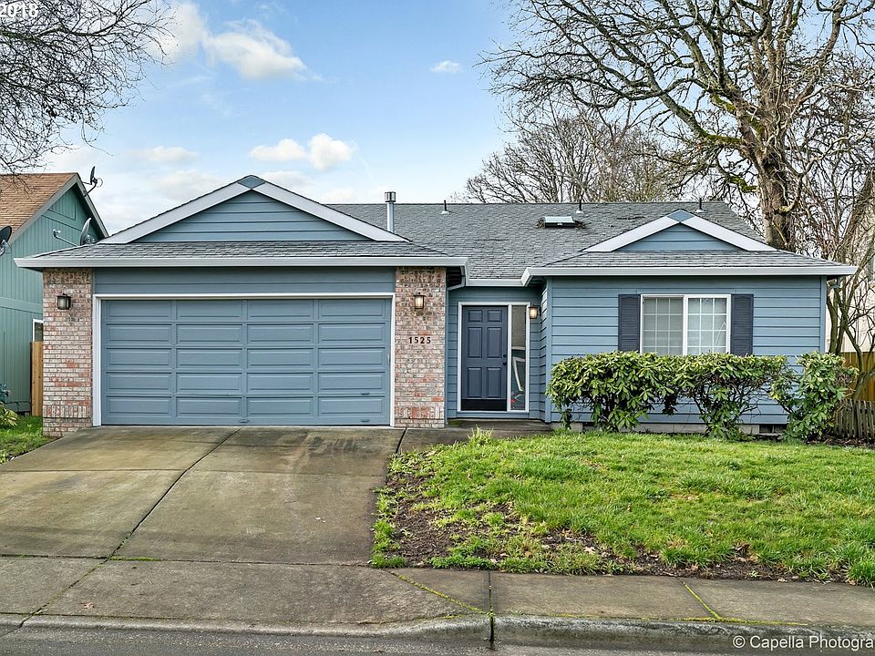 This cute home is located on a quiet neighborhood street without through traffic, yet close to three schools. One level, airy vaulted ceiling and skylights give at a very open feel. Gas fireplace make a cozy living room setting in chilly seasons. Nice deck and hot tub for outdoor entertaining. Fenced yard with raised bed and garden plots. New roof in 2017. New gas furnace and water heater as well as AC installed 2018.Solar install in 2019. With it's low maintenance you will own this home, it won't own you.