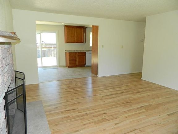 Move in Ready. Just remodeled and updated. New everything. 3 bdrm 1 bath 1020 sqft. Lovely refinished red oak flooring in living room and 3 bedrooms. Fireplace in Living room, new kitchen appliances, new cabinets, new counter tops and floor, New Vinyl windows, New siding, New Paint interior and exterior, Bathroom has new vanity and toilet and flooring. Single car garage, Large Fenced backyard, Off street parking.