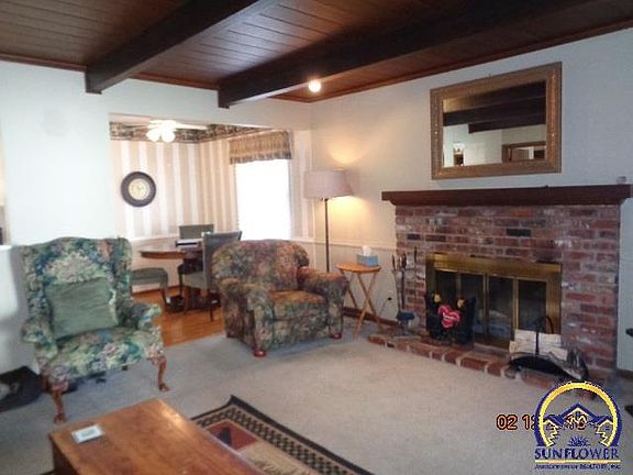 Nicely maintained, centrally located 3-5 BR (1 w/o egress), 3 BA walkout ranch. Formal LR plus cozy FR w/ gas starter FP & wood ceiling has sliders to covered back deck. Eat-in pass-thru kit w/gas cooktop & dbl ovens. MBR w/BA. Full part fin bsmt has rec rm plus FR/DEN/BR w/ FP, 4th BR (no egress), bath, laundry & stg rm. Fenced backyard w/garden spot, patio & garden shed. 2 car gar w/upper stg. Roof new in 2011. Whitson, Landon & Topeka West Schools. Don't miss out on this lovely home!