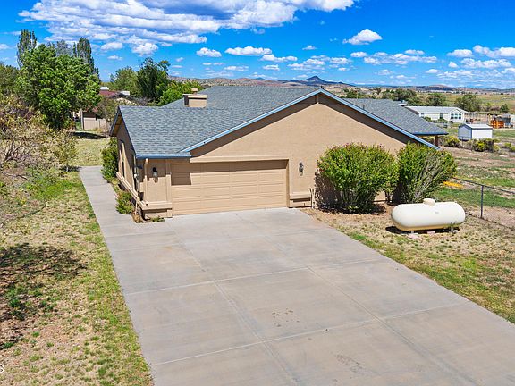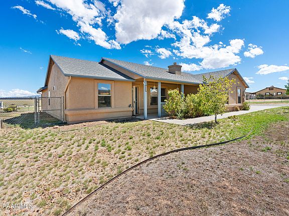 This Chino Valley home offers a spacious open floor plan with 4 bedrooms and 3 bathrooms, freshly painted exterior and interiors, with plenty of room to enjoy both inside and out. Designed with a split floor plan, it features a primary suite plus a junior suite--perfect for guests or multi-generational living. The large kitchen showcases granite countertops, a center island, and excellent pantry storage, making it a great space for everyday living as well as entertaining. The open living room feels warm and inviting with high ceilings and a gas fireplace. Sitting on a fully fenced level 1-acre lot, this property provides room for your lifestyle with an attached 2-car garage, a detached 1-car garage, RV parking, and cross-fenced areas for added versatility. Take in the wide-open views of the Bradshaw Mountains and the San Francisco Peaks while enjoying the outdoor space. A valuable bonus: the current VA loan is assumable at a 3.75% rate, giving buyers a rare financing opportunity in today's market. This move-in ready property blends comfortable living with practical amenities and attractive buyer incentives. Preferred lender offering 1/0 buy down as well as offering more permanent interest lowering incentives.