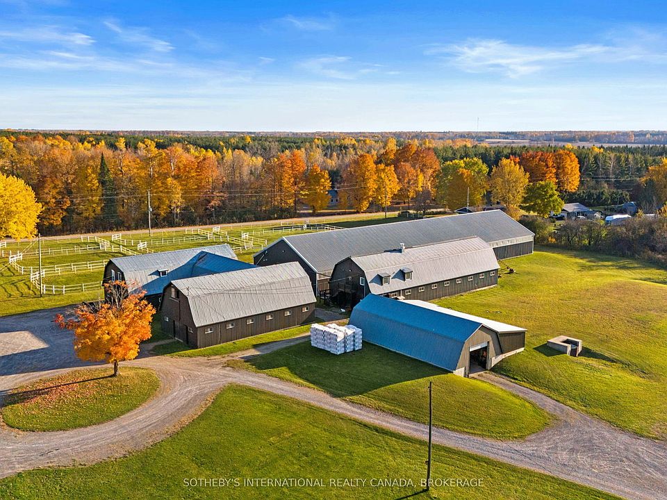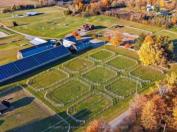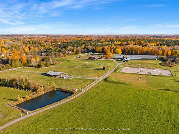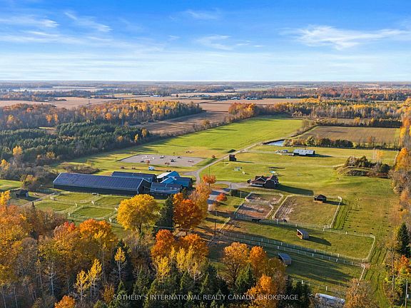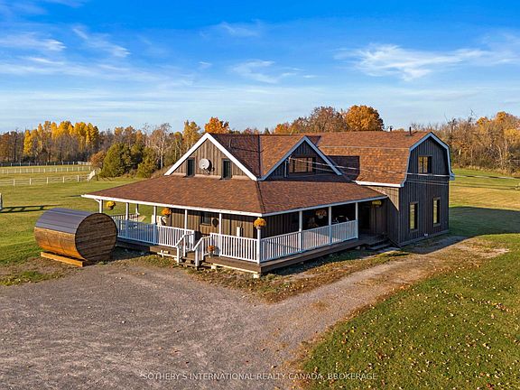 Discover one of Canada's Finest Equestrian Estates, conveniently located near the nation's capital, Ottawa international airport & the U.S. border. Designed for luxury living & top-tier horse care, this 54-acre turnkey property features an 1850s restored 3bd+den 2.5 bath home blending historic beauty w/ modern comforts. Upgrades include hardwood & heated tile flooring throughout, oversized wood-burning fireplace, new plumbing, electrical, HVAC, & spray foam insulation. Also boasting 4 upscale apartments- two 3-bdrm, 2 bdrm, 1-bdrm unit- perfect for staff, clients, extended family or guests. Grounds include 17 well drained sand & grass paddocks, 2 stables w/24 spacious stalls & a 60 x 200 insulated indoor riding arena. Also equipped w/a lower barn, complete w/automatic watering system & a large muck shed allows for efficient manure management. This estate presents a lucrative investment opportunity while providing unparalleled infrastructure flexibility to build your equestrian business, Flooring: Hardwood, Flooring: Mixed