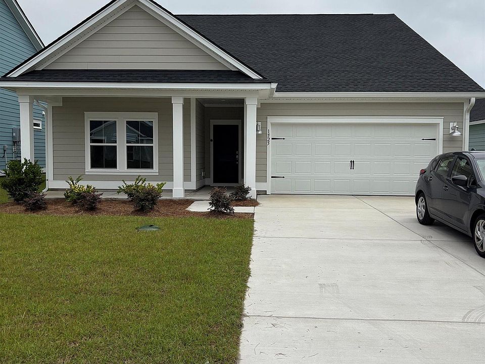 Exceptional 3-Bedroom Home with Elegant Features and Resort-Style Amenities Nestled in a prime community, this remarkable 3-bedroom, 2-bathroom single-family home offers an extraordinary living experience, combining sophisticated design with practical luxury. From the moment you arrive, the charming covered front porch invites you to relax and unwind in comfort. Inside, the open-concept floor plan enhances the flow of the living spaces, creating the perfect setting for both entertaining and everyday living. The formal dining room exudes elegance, while the cozy breakfast nook offers the perfect spot to enjoy your morning coffee. The heart of the home features a stunning corner gas fireplace, providing warmth and ambiance, ideal for cozy nights with family or friends. The chef-inspired kitchen is thoughtfully designed with ample quartz counter space and modern appliances, perfect for preparing meals in style. The first-floor owner’s suite is a true sanctuary, boasting tray ceilings and a luxurious en-suite bathroom with a tiled shower featuring a built-in bench—creating a spa-like atmosphere right at home. The fully covered 26' rear porch is ideal for dining or entertaining Step outside to the amenity center to experience the ultimate in outdoor living. A lavish pool awaits you, providing a serene oasis for relaxation and fun, while the Green Egg grilling area invites you to enjoy outdoor cooking in style. For the active lifestyle, two pickleball courts offer endless entertainment and exercise options, making this home and community a perfect blend of leisure and luxury. Additional highlights of this stunning home include durable Hardee board siding, a tankless water heater for never-ending hot water, and an impeccable attention to detail throughout, making this property an absolute must-see. With its perfect balance of comfort, luxury, and convenience, this home offers everything you’ve been looking for. Schedule a showing today and make this dream home yours! **Photos are of a similar model home in another community, and may include upgraded features not offered THIS HOME IS UNDER CONSTRUCTION