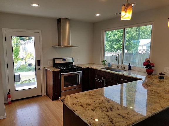 You have found your home! Lovingly restored by the owners. Everything is new in the last 2 years! Originally built in 1925, the house taken down to the studs, expanded and rebuilt. All new electrical, gas, water, plumbing, AC, appliances, pantry, granite and quartz counter tops, hardwood floors, interior/exterior lighting and automatic irrigation. Master bedroom easily accommodates a California King bed, bench at the end and his/her seating on both sides of the bed, master bath with full size mirror and extra storage, extra-large walk in closet. 2nd bedroom has lighted closet, 3rd bedroom can also be used as a dining room if desired. 2nd bathroom has attached laundry with additional storage. Backyard has a large arbor, festive lighting, green lawn, fruit trees, and a 30 foot storage container,and a large garden with separate irrigation system. Rent is $1395/mo. Owner pays gardener. Tenant pays utilities, including water for yard. No smoking on premises. Small pets with additional deposit considered.