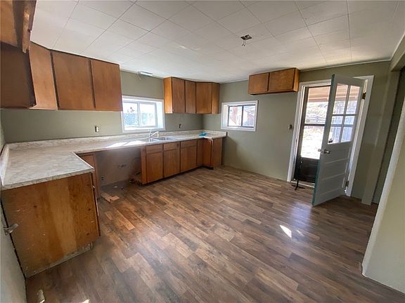 Great project opportunity! This home is nearly complete. Situated on almost 1/2 acre this adorable little log cabin is ready for your ideas. Zoned Business. Oversized garage with living space/workshop area. Several things have been started, from newer flooring throughout living area, a new furnace that needs to be connected, exterior paint is new and septic has passed its inspection. Due to unfinished nature, this will likely need to be a cash purchase but will reap rewards upon completion!