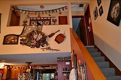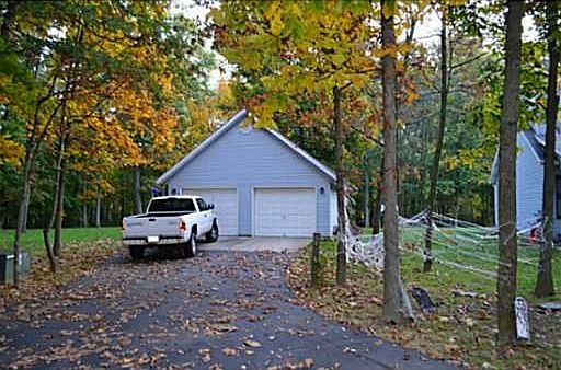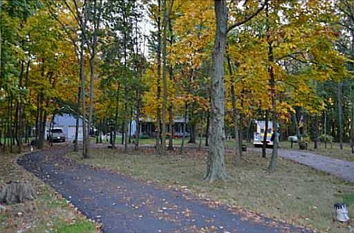 Great house nestled in 5 acres of beautiful woods. Large family room with cathedral ceiling. Kitchen with oak cabinets, pantry & bar seating. Huge sunroom with windows overlooking the picturesque woods. Large first floor master suite with lots of closet space, gas fireplace & master bathroom with double sinks, shower & tub. 2 bedrooms and full bath upstairs. Partially finished basement. Lovely deck off of sunroom. 2 car detached garage. Hague water system. Propane heat (propane tank does not convey with property)