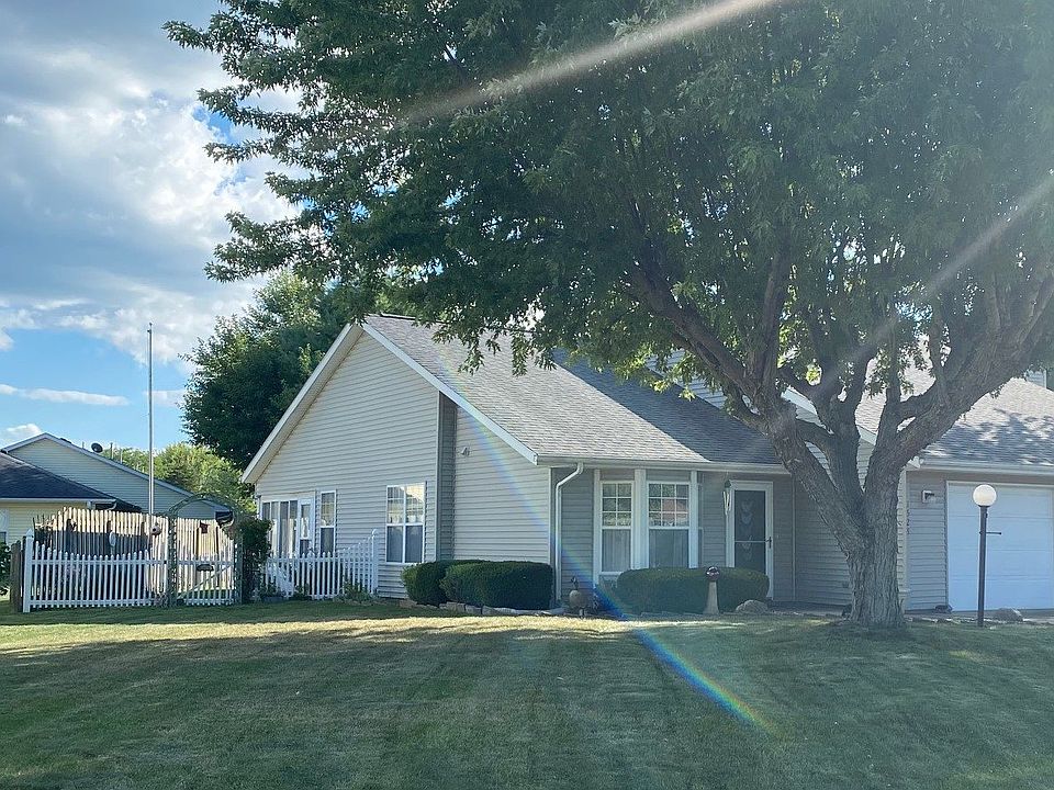 Immaculate one story, low maintenance home awaits! This darling home shows pride of ownership and great care. You will adore the open concept with tall ceilings and tremendous natural light. Step into to the eat in kitchen with bay window and tons of counter space including refrigerator, dishwasher, range and microwave looking into the huge great room. This great room has plenty of space for you and gatherings with a portable electric fireplace for a warm glow. This home features 2 bedrooms including a master suite with attached private half bath and walk in closet. The full bath has ample space and storage. Enjoy mornings on the eastern facing sunroom with sliding door from the great room, and door to the fenced back yard with shed and beautiful landscaping. This home also features an attached garage with built in shelving and mechanical room. Updates include a new furnace and central air unit, and dimensional shingled roof approximately 10 years old.