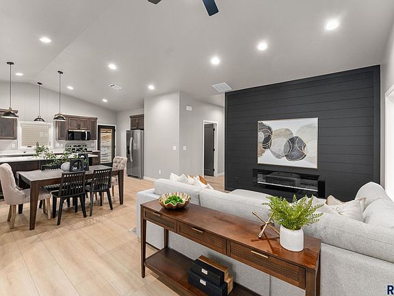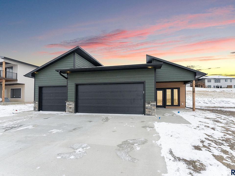 Welcome home to modern luxury! This stunning slab-on-grade property boasts 3 beds, 2 baths, and a host of high-end features. With an oversized peninsula, custom cabinets, and stone counters, the kitchen is a chef's dream. Enjoy the spacious living areas with cathedral ceilings, while the covered patio offers the perfect spot for entertaining. Additional pantry storage in the utility room and a 3-stall garage provide convenience and ample space. Plus, you'll enjoy the extras like Anderson windows and a seamless blend of style and functionality. Don't miss your chance to make this your forever home! (*Note: Sod will be installed in the Spring)