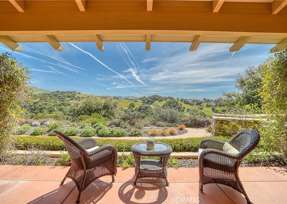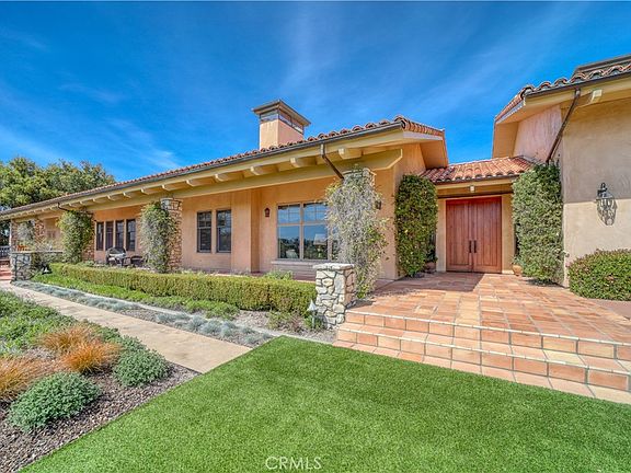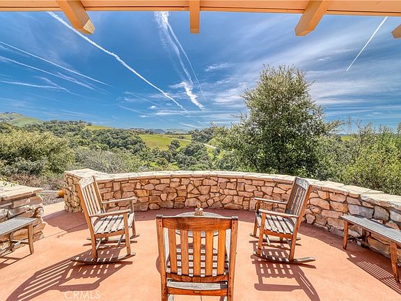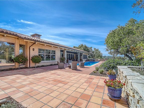 Stunning views of Varian Ranch and the Edna Valley from nearly every window of this thoughtfully designed Estate Home. Situated behind the gates of the highly desirable Varian Ranch on a 35,719 square foot lot. An additional security gate provides the utmost of privacy to the beautifully landscaped grounds which welcome you to this 3,669 square foot home offering 3 bedrooms, 2 and half bathrooms, a home office plus an additional bonus loft. The elegant foyer is adorned with 8.5 foot wooden doors which open to the formal living and dining rooms with vaulted wood ceilings, Saltillo tile floors and views of the backyard pool. The family room/library offers built-in bookshelves with sliding ladders, alcoves, a cozy fireplace and window bench seating. The well-appointed kitchen features raw edged granite counters, double ovens, 5 burner cooktop, island with prep sink, dishwasher and built-in microwave. The casual dining area offers numerous floor to ceiling windows and atrium style door accessing one of several patios plus the backyard pool. A convenient laundry room and half bath are adjacent to the kitchen as well as the staircase leading to a bonus loft, perfect for hobbies or game room. A hallway enhanced with a wall of windows overlooking the backyard leads to the 2 guest bedrooms, office, opulent owner's suite and thoughtful main bathroom with adjacent French doors accessing the pool to act as a convenient changing room. The home office offers built-in desk and cabinetry plus access to the front gardens and patios. The owner's suite boasts private backyard access and an attached en-suite bathroom with jetted tub, separate shower, dual sink vanity and spacious walk through closet. You'll find plenty of parking with the attached 3 car garage finished with tile flooring and built-in cabinetry. The landscaped and manicured gardens feature numerous patio areas to enjoy the serenity and views. Come enjoy all of the Varian Ranch amenities including trails, tennis courts, pool, hot tub, clubhouse and equestrian center!