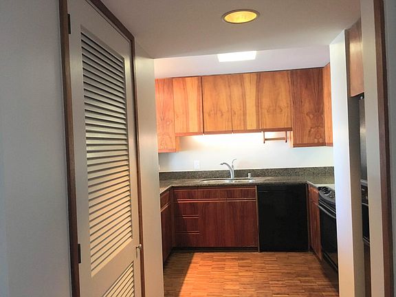 2 bedroom, 2 bath w/ 2 tandem parking. Remodeled with a spacious floor plan (1400+ sq ft), welcoming views, open lanai, and beautiful Koa cabinets and floors. Extra storage, wine cellar w/ personal wine cabinet, and full size washer and dryer. City, Mountain View. Amenities include a BBQ, Heated Pool & Jacuzzi, Tropical Garden with waterfall, Resident manager and more. Building has fire sprinklers, security and ample guest parking. Convenient access to schools, bus lines, freeway access and all major hospitals. Building Information: Cable, Internet and Water Included. Separately metered electricity. 1 Year minimum. No Pets.