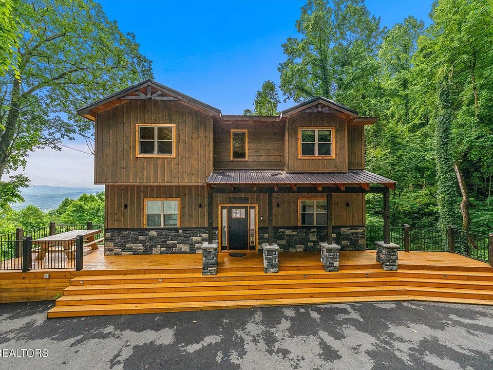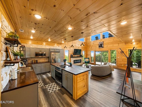 Discover the charm of this stunning cabin located at 1525 Zermatt Ct in Chalet Village, Gatlinburg, TN. Built in 2022, this beautiful three-story cabin offers 3,000 square feet of secluded privacy. The community provides fantastic amenities, including a pool, tennis courts, and a clubhouse, perfect for both relaxation and recreation. This spacious cabin boasts 3 bedrooms and 3 full baths, making it ideal for family living or entertaining guests. Enjoy off-street parking and a host of indoor and outdoor entertaining spaces, such as a hot tub, game and movie room, and three levels of decks. The loft offers additional space to unwind and take in the scenic views. Inside, you'll find exquisite finishes throughout, including tongue-in-groove wood paneling and contemporary touches. The modern kitchen features stainless steel appliances, and the home is bathed in natural light. Multiple gas fireplaces add warmth and ambiance to this inviting home. A dedicated dining room provides the perfect setting for meals with family and friends. This cabin is in a prime location, close to the stunning beauty of the Smoky Mountains and all the fun tourist attractions, shopping, and dining options the area has to offer. It's even within walking distance of Ober Mountain. Whether you're looking for a private residence or an investment property, this cabin is an excellent choice. Currently used as a short-term rental, it has a great rental history and is sold fully furnished, ready for you to move in and enjoy!