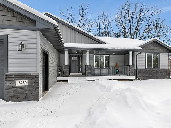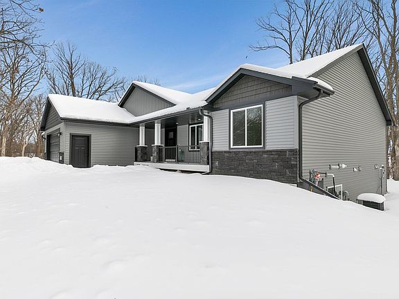Elegant and stunningly beautiful, this model home is located in a beautiful wooded setting. This gem offers 3 bedrooms, 2 full bath, 1 half bath located on the main level. Spacious open-concept kitchen, dining room and living room with main floor laundry. Kitchen has custom alder woodwork, cabinetry and granite countertops. Vaulted ceilings, a gas fireplace with a stone surround and luxury vinyl plank flooring. Bedrooms are carpeted and primary bath has tile flooring. Oversized 6 stall attached garage, each door is 16X8, first and second stalls are 26 feet deep, the third and fourth stalls are 38 feet deep. Garage has gas line hook up. Asphalt driveway, vinyl siding with cultured stone. Mature trees, wooded and private. 2.18 acres close to Sherburne National Wildlife Refuge area. This is home!
