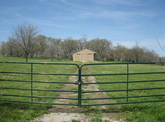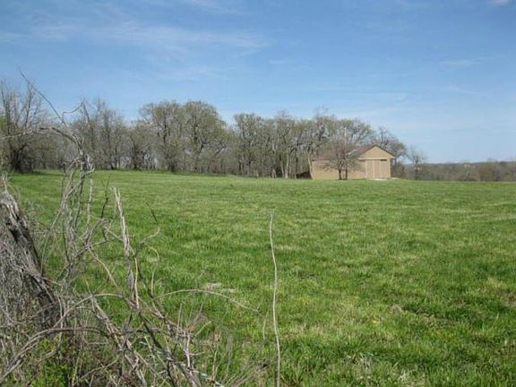 31 Acre weekend retreat! Quality custom built 36'X42' Barn with an apartment in the north end of the building. Plumbed for a bathroom & heavily insulated. Electric & rural water meter. Covered porch overlooking small pond. Corner lot on blacktop. Hay pasture & fully fenced with mature trees. Jay Hawk Linn School District.
