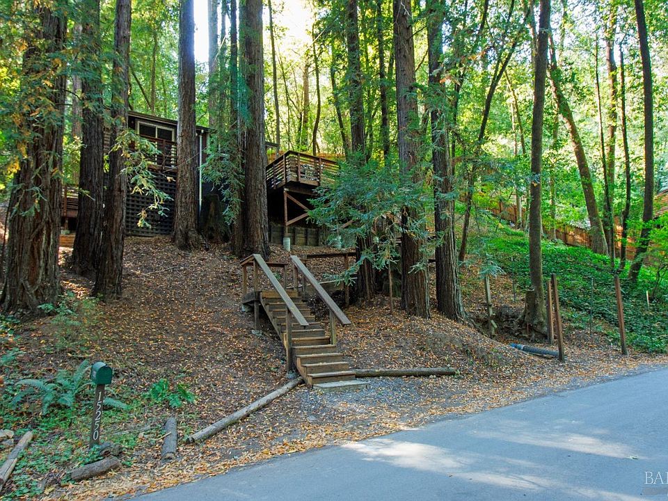 Come on home to our cozy, private, Magical treehouse in the Redwoods. This is the quintessential country getaway featuring a beautiful outdoor entertaining area surrounded by Majestic Redwoods. Our warm wood interior boasts updated kitchen and bathroom. Including heated floors. Large storage/laundry area below. Second lot included for privacy and future enhancements. It even has an outdoor shower area to clean off after a fabulous day at the beach. This is it!!