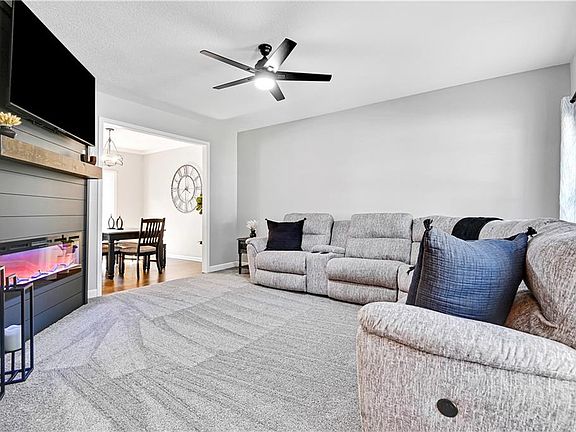 • Features: Carpet, Ceiling Fan(s), Fireplace
