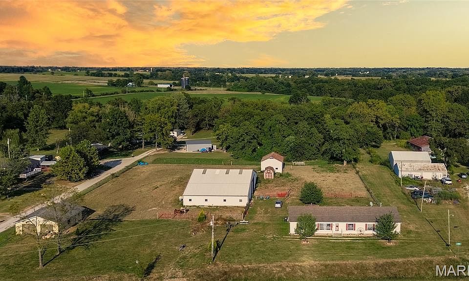 Horse friendly 3.04 acres with 4-bedrooms, 2 full bath home. Step inside front living room to open dining/kitchen with center island, bar seating, newer gas stove/oven and dishwasher included. Divided floor plan, wide hallways, ample storage, newer flooring in Living, primary bedroom and hallway. Laundry with small pet door at South end near family room with fireplace. Additional cabinets included; can be moved. Detached 2 car garage, Horse barns and shed. Enjoy all this property has to offer with Jersey Dist. 100 schools and convenience to St. Louis. Open to all loan types! Seller to make lender required repairs only. Buyer may have inspections. Seller needs 14 days possession of barns after closing. MJM electric, Senger's propane, JC Rural Water.