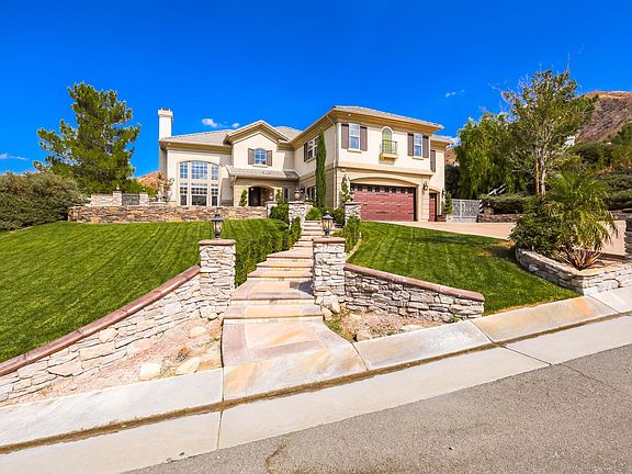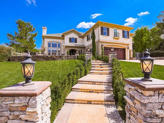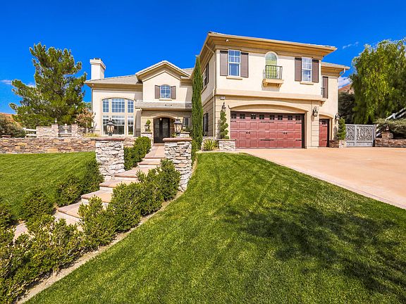 Stunning estate home located in the highly exclusive Ridgecrest Estates in luxurious Sand Canyon. This home showcases 6 bedrooms, 4 baths on an extensive 1.64 acre lot! Immediately you'll notice the exquisite curb appeal of this home with a massive stamped concrete driveway, pillar lit walkway and inviting front court yard. Enter through the custom wrought iron doors into the grand foyer highlighted by the impressive iron/wood staircase. The grand living room with cathedral ceilings allows an abundance of natural light to flow through the home. Engineered wood flooring recently installed up and downstairs and painted throughout. The kitchen has stunning custom cabinetry, built in top of the line appliances, and a perfect view of the Angeles National Forest mountains from your kitchen windows. There are two large down stairs bedrooms/ one converted into a home office and a full bathroom. Upstairs the primary bedroom showcases a cozy fireplace, eloquent bath as well as master retreat ,currently used as a bonus room. Three more expansive bedrooms span the top floor, one currently converted into an amazing home/media center. The home is equipped with "smart" controls which directs the home security/irrigation systems. Come entertain in your private serene backyard! Nestled up to the Angeles National Forest, enjoy the sites and sounds of nature at the custom built fire-pit/sitting area. Take in the views of all Sand Canyon has to offer on the quaint and quiet sitting deck. There is a three care garage, custom dog-run, and huge gated RV Parking for all your toys! Come make this the home that you've been waiting for!