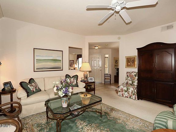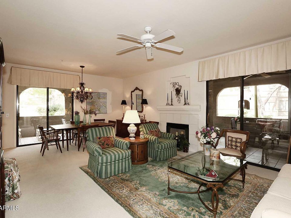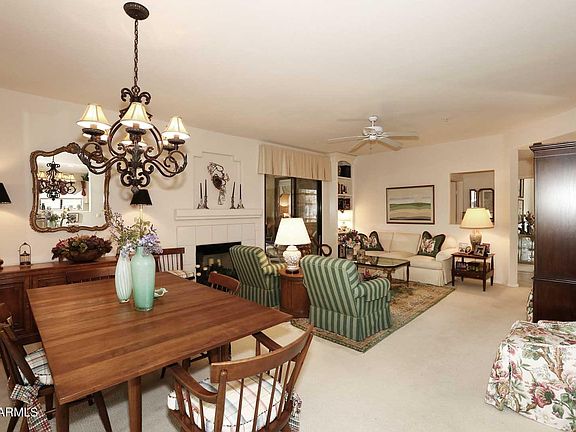 Custom built book shelves. Pull out drawers in kitchen cabinets. Two covered patios with tiled flooring and large storage closet. Community offers heated pools, spas and tennis courts. Perfect location near AJ's, Flo's, hiking trails, and golf. Very near the 101 freeway, dog park, costco and other shopping. This beautiful home has had only one owner.