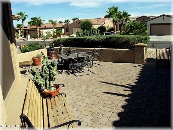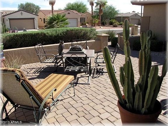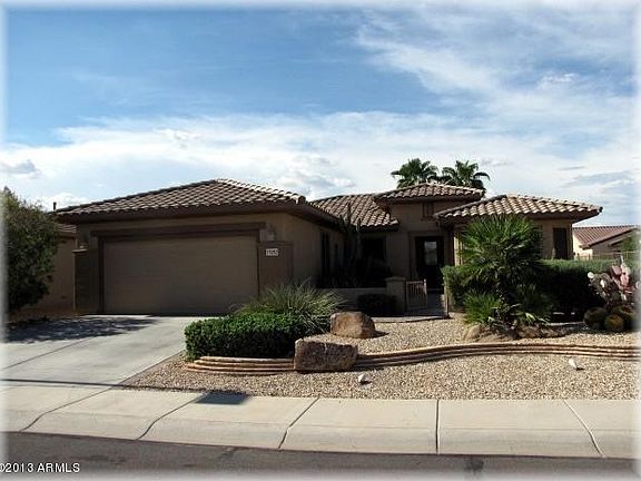 For more information on this property, contact the Listing Agent, Bernie Bair at (623) 680-0101 or bwbair@cox.net. Sun City Grand is a Modern 45+ Golf Community with 4 Golf Courses. This Highly Upgraded Home includes Solid Wood Front Door with Leaded Glass Insert. Cherry Cabinets, Front (With Knee Wall) & Back Patio, Built-Ins in Library, Backyard Water Feature, Diagonal 18 Tile in Great Rm, Kitchen & Nook, Bathrooms, Utility Room, plus Many More. Like New Inside and Professional Landscaping.
