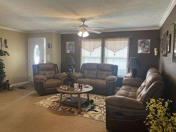Lovely setting, manufactured ranch with 4 BR's and 2 Baths. The floor plan is spacious and open. There is a 20x20 Carport, Storage Barn w/ Garage door & Ramp, and a 10X8 Storage Building. Easy access to I-81. Property being SOLD AS-IS.