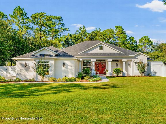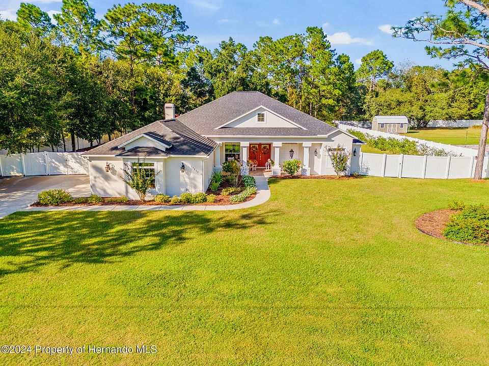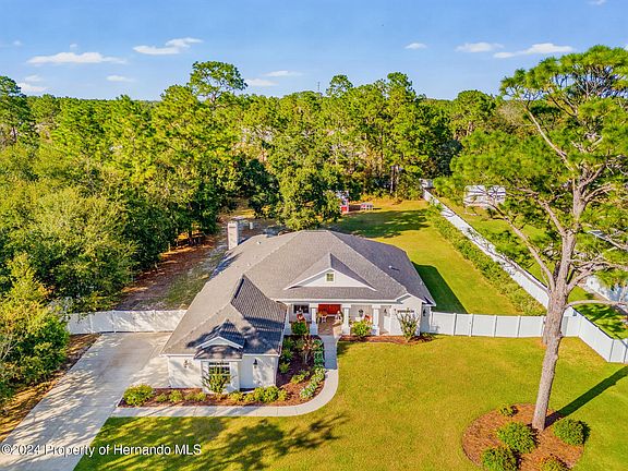 ACTIVE UNDER CONTRACT - Accepting Back Up Offers IMMACULATE 2019 Home on 1 ACRE in Beautiful Oakwood Acres - DESIGNER KITCHEN, Room to Roam, and Zoned for Your Furry Friends! Looking for a home that checks all the boxes? This 2019-BUILT GEM offers modern comfort and charm in the idyllic OAKWOOD ACRES NEIGHBORHOOD. Situated on a FULLY FENCED, cleared 1-ACRE LOT, this 3-BEDROOM, 2-BATH HOME boasts a DESIGNER KITCHEN and a spacious layout perfect for family living or entertaining. Surrounded by ESTATE-STYLE HOMES and picturesque white picket fences, you'll feel right at home the moment you drive into the community. Plus, it's zoned AGRICULTURAL RESIDENTIAL, meaning there's room for your CHICKENS, GOATS, OR EVEN A HORSE! And with NO FLOOD ZONE, NO CDD FEES, and a low HOA FEE OF JUST $100 A YEAR, this home offers a hassle-free lifestyle without compromising on style. Step inside, and you'll be greeted by the kind of craftsmanship and style that's hard to find. With 10-FOOT FLAT CEILINGS, TRAY CEILINGS in the family room and primary suite, WOOD-LOOK CERAMIC TILE FLOORING THROUGHOUT, decorator lighting, and upgraded baseboards and trim, this home is brimming with thoughtfully designed features. The kitchen is the heart of this home—and it's a true masterpiece. Picture a beautifully designed space with a stunning CUSTOM HOOD, an expansive ISLAND FOR CASUAL DINING, and an EXTRA-DEEP SINK. The rich wood cabinetry, paired with breathtaking QUARTZITE COUNTERTOPS, adds a touch of luxury that's hard to match. Every inch of this kitchen was crafted to impress, blending function and style in a way that makes it perfect for serious cooking or memorable gatherings.Just off the kitchen, you'll find a cozy family room that invites you to unwind. The WOOD-BURNING FIREPLACE, framed by a charming BRICK FACADE, adds warmth and character. The primary suite? Think of it as your own private spa retreat. Enjoy a HUGE WALK-IN CLOSET, and then step into a jaw-dropping bathroom featuring a luxurious GARDEN TUB and a stunning WALK-THROUGH GLASS SHOWER. Outside, enjoy a SCREENED LANAI, a spacious PAVER PATIO with a REMOTE-CONTROLLED RETRACTABLE AWNING, and a private, fenced backyard with a STORAGE SHED. An EXTRA-LONG DRIVEWAY, SIDE-ENTRY GARAGE, and LARGE INDOOR LAUNDRY ROOM add plenty of convenience to this exceptional home. Location? You'll love it! Just 5 MINUTES TO THE SUNCOAST PARKWAY, making your commute to Tampa a breeze. You're also conveniently close to BROOKSVILLE, SPRING HILL, AND HERNANDO BEACH, providing endless options for dining, shopping, and outdoor activities. Enjoy the best of both worlds: a peaceful country setting with easy access to everything you need!