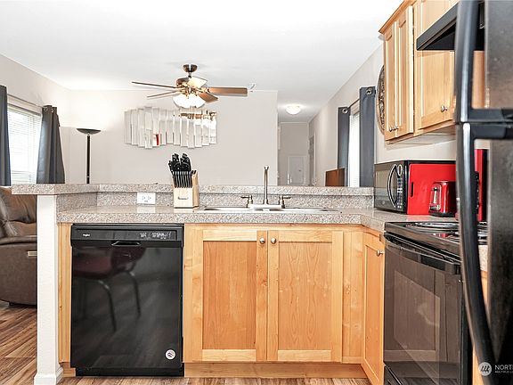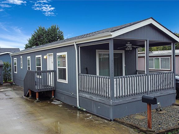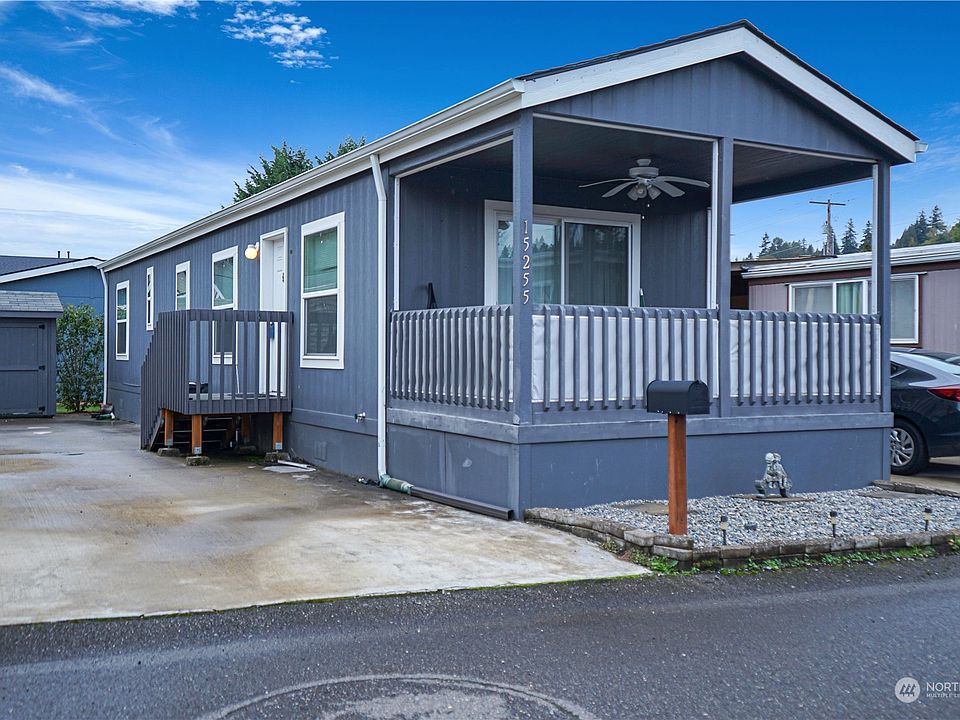 Welcome to Wonderland Estates! This beautifully kept, turn key home was built in 2018. Featuring 2 bedrooms and a 3/4 bathroom across 715 spacious sq.ft. this home features a functional layout that includes an open kitchen w/ room for a dining table, plenty of cabinet/storage space and bar seating. The second bedroom can be used as an office space. Cool down with the newer A/C unit in the summer and enjoy your coffee on the large, lighted and covered deck. Use the large shed that comes with shelving and electricity for extra storage or a workshop! RV parking available in the community for a fee. Desirable location of Maple Valley Hwy close to gas stations, coffee, entertainment, restaurants, shopping and golfing: Maplewood & Fairwood GC.