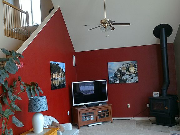 Updated home, bright with lots of windows. New front door and sliding glass door in the back. Newer laminent flooring, kitchen,dining room and entry way. Newer wood burning stove. Huge master suite and bath on the top floor with a large walk in closet. Big 3 car garage with room for a shop.