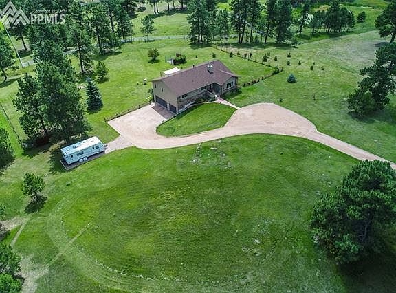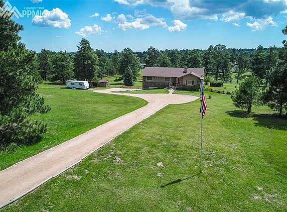 Sought after quiet cul-de-sac location in District 20 Black Forest!! Remodeled rancher with three car garage and walk-out basement on a fully mitigated 5 acre lot. Open kitchen with slab granite counters, breakfast bar and new stainless steel appliances. Spacious master suite with walk-out to the 30x12 back deck, walk-in closet, remodeled 5-piece master bath featuring a jetted tub and slab granite counters. Sunken living room with vaulted ceilings and two sided gas fireplace. Zoned for horses! RV parking space! Bright, open and remodeled rancher with newer carpet, light fixtures, glowing hardwood floors, windows, appliances, siding and roofing. Freshly painted interior and stained deck. Spacious dining room with large bay window and hand scraped hardwood flooring with a gas log fireplace. Room to grow in the unfinished walk-out basement with rough-in bath and private patio. Oversized, insulated, finished and attached 3 car garage. Serene setting with towering Ponderosa Pines, Bristlecone Pine, Blue Spruce and an abundance of beautiful flowers! Multiple outdoor entertaining areas - 30x12 deck with awning, large concrete patio and a horseshoe pit! Located in a quiet subdivision with beautiful homes surrounding! See this one quickly!