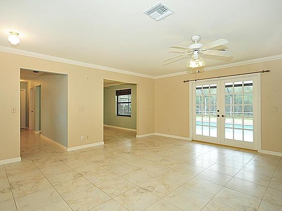 This impeccably maintained CBS pool home with City Water is located in Palm Beach Country Estates it has 4br/2.5ba/2 car garage. Full Solar Array. Features include an open floor plan, formal dining room, living room with French doors that open to the Brand new in 2020 covered/screened pool area with Travertine Deck, Three completely remodeled bathrooms, high hat lighting in the kitchen, newer appliances, Ceiling height cabinets, pantry, lazy susan, new carpet in bedrooms, Beautiful 10"x48" French wood look tile in the living areas, indoor laundry, cabana bath. This home is further enhanced with a new metal roof, fenced back yard, additional shed for storage on 1.17 acres with over 2400 total sq. ft.
