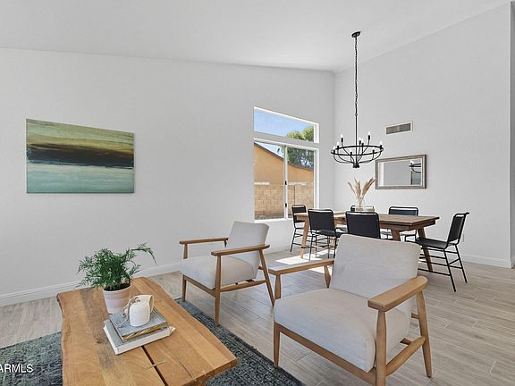 Welcome to this refreshed 3 bed, 2 bath home offering a perfect blend of comfort & style. With fresh paint inside & out and new wood-look tile flooring throughout the main living areas. Step into the living room featuring a cozy fireplace w/ a tile surround. The updated kitchen is a chef's dream, showcasing custom shaker cabinetry, quartz countertops, a tile backsplash, stainless steel appliances & a kitchen island. All the bedrooms include new carpet, while the primary suite offers a peaceful retreat w/ a walk in closet & a en suite bathroom complete w/ a new dual-sink vanity, quartz countertops & modern finishes. Outside, enjoy Arizona living at its finest w/ a covered patio & a resurfaced PebbleTec pool. Plus a NEW Water Heater!