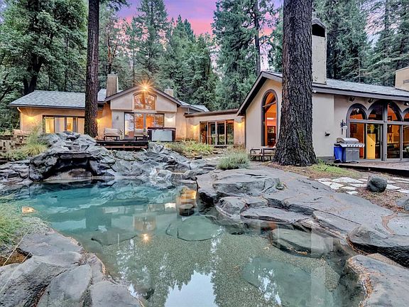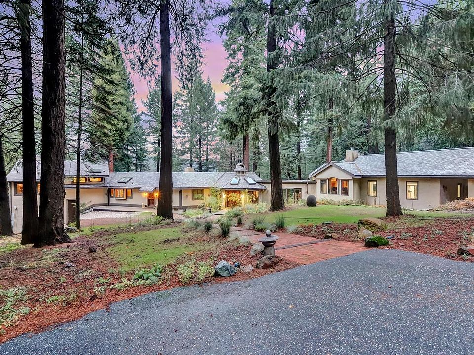Stunning and magical Contemporary home on a breathtaking 30 acres, located minutes to Historic downtown Nevada City and easy access to Scotts Flat Lake! Dramatic floor plan offers open beam, vaulted ceilings and spacious rooms with loads of natural light streaming throughout! Used as a primary residence, as well as a Retreat Center, this fantastic home offers mountain luxury at its finest! The great room is huge and ideal for entertaining with a gourmet kitchen, dining area for 20 and glass French doors leading out to the inground Salt Water Swimming pool. The Family room is magical with surrounding windows which bring the outside indoors. Multiple master suites and guest bedrooms, Music Studio and lots of little retreat areas. "Birthday-suit-private with easy access to the lake and hiking trails throughout the land, which is all useable. You will not find another property quite like this!