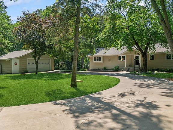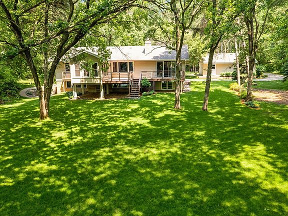Prime Mississippi Riverfront Opportunity. Enjoy 170 feet of stunning Mississippi River frontage on one of the most desirable areas the river has to offer! This property features a gentle slope from the beautifully maintained walk-out rambler to the water's edge. Nestled on 3.8 acres of mature woods and manicured lawn, the home boasts an abundace of windows providing panoramic river views. Relax in the three-season porch surrounded by windows and finished with knotty pine, or step out onto the spacious backyard deck constructed with maintenance-free materials. The updated "cook's" kitchen is equipped with oak cabinetry, quartz countertops, tile backsplash, and stainless steel appliances. Additionally, there are two detached garages, one of which is insulated, heated, and includes workshop space. Enjoy the convenience of easy access to Hwy 10, making this riverfront retreat both secluded and conveniently connected. Don't miss this exceptional opportunity to own a piece of the Mississippi River's finest offerings!