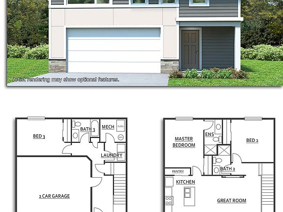 Destiny Homes presents the Vista plan in Waterford Ridge located in Urbandale. This two story plan features 3 bedrooms, 2.5 baths, and more than 1500 sq ft of finished space. The zero entry main level features bedroom number 3, full bath, and laundry. The upper level hosts the large, open concept living room and kitchen. Kitchen features quartz countertops, hardware, and a great sized pantry. Master bedroom and bedroom number 2 are on the upper level along with 2 partial baths. There is a long list of standard features not often found at this price point, including Vinyl siding, electric fireplace, energy efficiency, and 2×6 construction. Ask about $2,000 in closing costs provided by preferred lender.