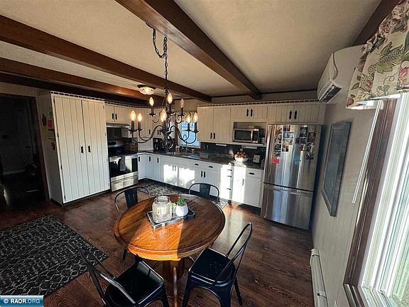 Welcome to your new home in the sought-after Rockridge School District! This delightful 3-bedroom, 2-bathroom house is perfect for those looking for comfort, style, and a touch of luxury. Generous 30x12 primary bedroom that has been modernized with built-in drawers and a chic barn door closet system to maximize space and style. Farmhouse Flair in the eat-in kitchen is adorned with rustic wooden beams and equipped with modern stainless steel appliances, blending country charm with contemporary convenience. A custom family-sized workstation seamlessly transforms into an elegant buffet setting, perfect for hosting family holidays and gatherings. Outdoor Oasis with your splendid cozy backyard features and a private spa tucked under a pergola, offering a serene retreat. Additional amenities include a back deck, storage shed, and a two-car garage. Benefit from a newer roof with architectural shingles, siding, central air, and hot water heat, ensuring year-ro comfort and reliability