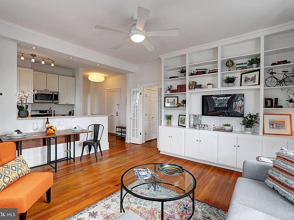 Welcome to your new home in Dupont Circle! Nestled on the top floor of the coveted and pet-friendly Cavanaugh Court, this corner unit offers the perfect blend of comfort and convenience. You'll be greeted by an abundance of natural light that floods the spacious living area, which includes beautiful built-in shelving and TV space, and is a wide-open concept seamlessly connecting the living, dining, and kitchen areas. The kitchen offers great storage and appliances, and lovely wood floors cover the living and sleeping spaces. The primary bedroom features a newly remodeled en-suite bathroom and huge closet, with the second bedroom offering ample spaces for a home office/guest room combination. The second bathroom offers convenience with the in-unit washer and dryer, but you also have access to the common laundry in the building. Located in the heart of Dupont Circle, you'll enjoy easy access to an array of great (award-winning) restaurants, convenient shops, and transportation options. Whether you're looking to explore the vibrant nightlife or simply enjoy a leisurely stroll in the park, everything you need is just steps away. Taxes INCLUDED in Coop Fee!