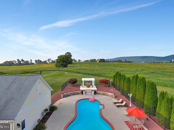 Run, don't walk to see this estate home completely renovated/restored from top to bottom with no expense spared sitting on 26+ acres of secluded farmland! The mountain and pastoral views are captivating in this peaceful, rural setting. Upon entering the home, you'll find gleaming hardwoods on the entire main level which features both traditional and an open floor concept with all modern features. The gourmet kitchen is equipped with stainless appliances, wall oven, built-in microwave, warming drawer, granite countertops, huge granite Island with bar seating space and opens to the dining area and family room. All baths have been updated with premium finishes and features. The restored/renovated hardwood staircase extends up to 2 upper levels. The 2nd level is the bedroom-level and the 3rd level is an open level for game room and/or entertaining complete with dry bar, refrigerator, skylights and access to a balcony that shows captivating views of your private, backyard oasis complete with a 10-foot deep in-ground pool, gorgeous gazebo and large patio area for entertaining. The 3-car garage includes a pull-down attic access for additional storage.. The basement has been enlarged and improved with painted floors and walls for all the utilities and your storage needs. Utilities include hydronic floor heating covering part of the home, 2 separate heat pump units covering the vast majority of the home, 400A electric service with generator backup via a 30A transfer switch, central vacuum and complete water treatment. Fireplaces noted as "other" are non-working but could be converted to working. There's one functioning fireplace with a wood stove insert. So much to see and appreciate! BE SURE TO WATCH THE VIDEO OF THIS BEAUTIFUL PROPERTY! This won't last long. Come see it before someone else gets to call it home!