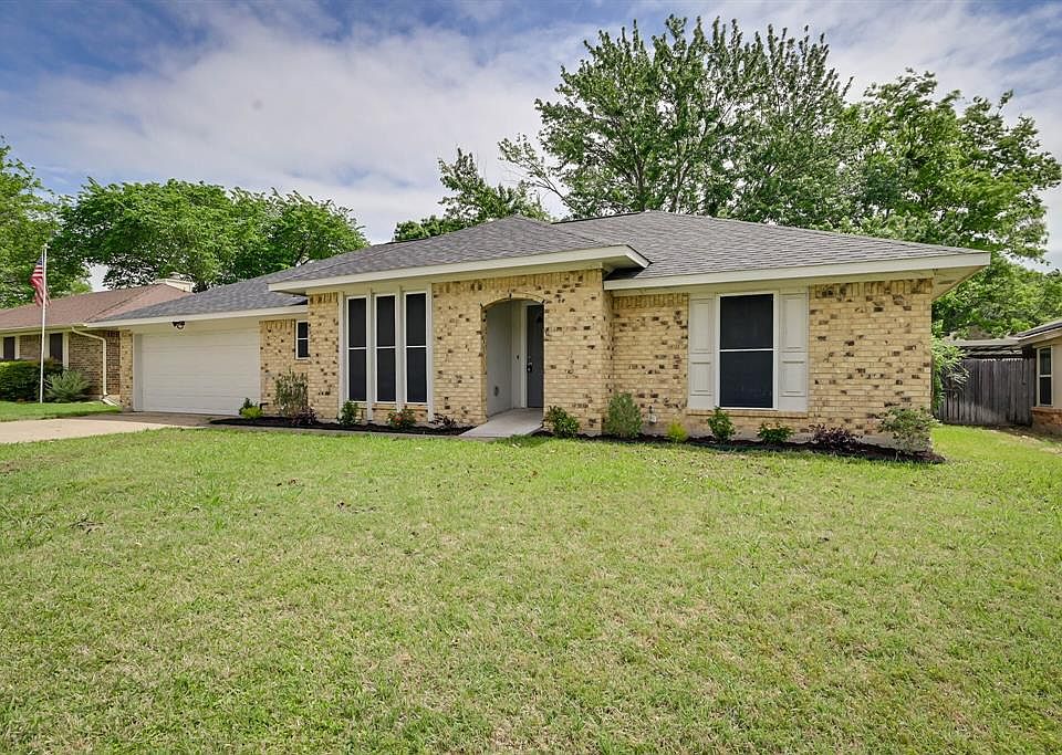 Charming move in ready home in Walnut Creek Valley. A beautiful yard on a quiet street leads you into a freshly painted and updated home. The foyer opens to both living rooms, the larger living room has vaulted ceilings with a wood beam and wood burning fireplace. It is open to the kitchen that boasts white cabinetry and beautiful dark granite countertops, the eat in kitchen has a floor to ceiling bay window overlooking a peaceful backyard with plenty of tree shade and privacy. This home has a split bedroom design, owners suite has a built in desk, a larger attached bathroom with shower as well as 2 closets. Two other spacious bedrooms surround an updated guest bath that has a therapeutic jetted tub. Zoned for fantastic JL Boren Elementary, Asa Low Intermediate, Wester Middle School and Mansfield High School. 2022-07-27
