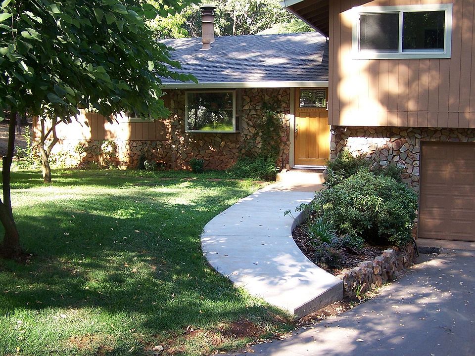 Peaceful private setting along the stream in lower Paradise is where you'll this home with owned solar and a Tesla wall battery. On over 2 acres of park like land, you will find ample space to enjoy the creek and breeze blowing through the trees. This well cared for home has an updated kitchen, solid surface floors throughout and gorgeous wood doors that lead to the deck that over looks the backyard. Up the half flight of stairs is where you will find the bedrooms and the master suite is oversized with a tree house feel, reading nook, walk-in shower, ample closet storage and a door that leads to the deck. Both spare bedrooms are also well size and have sliders out to the side balcony. In addition to the owned solar array with a Tesla wall battery for power during the outages, the sale also includes the newer hot tub! The attached garage has ample work space and at the back there is an additional 200 +/- SQFT of finished spaced with so much potential. Properties with this kind of tranquility are hard to come by, don't miss your chance!
