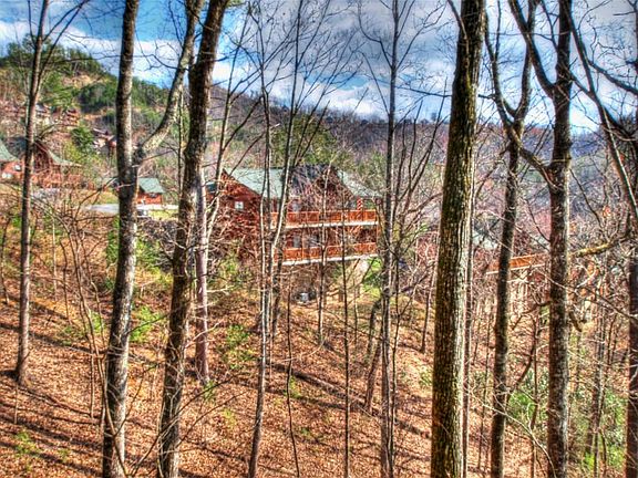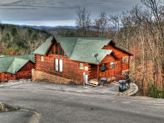 Cabin's name is Ranger Station. This approx 2,016 sq' foreclosed furnished log home offers two 42' covered porches, 4 bedroom, 3 baths, huge great room with fireplace and soaring wood ceilings, dining area will comfortably seat 8, nicely appointed kitchen and all appliances remain including the washer & dryer. Main level master bedroom with whirlpool. Lower level rec room has fireplace and pool table. Excellent rental history and it's located just behind Dollywood in a gated hillside community with an all season pool.