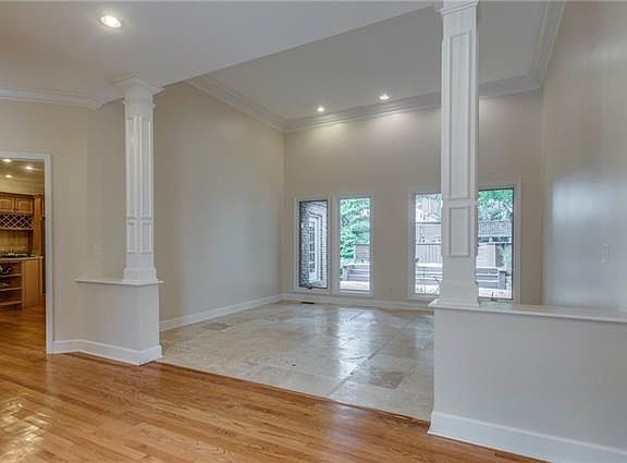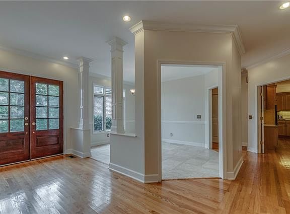 All one level except a few steps to 22x25 bonus room. Custom, home/culdesac/private fenced back yard with two decks and a patio. Large kitchen/keeping room/office w/ fireplace, built ins/4 fireplaces! separate laundry/nice pantry.