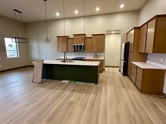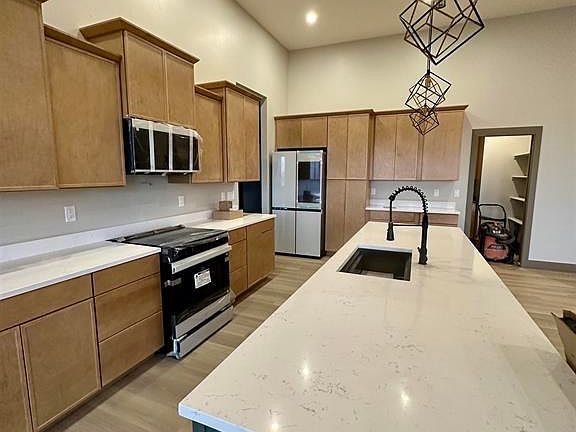 Under Construction – Stunning Modern Home in Cunningham Orchard Estates. Discover this beautifully designed 4-bedroom, 2-bathroom modern home featuring a desirable split floor plan, this home offers both privacy and functionality. The heart of the home is the gourmet kitchen, complete with a spacious island, walk-in pantry, and custom cabinetry. A convenient door leads to a large, west-facing covered patio. The fourth bedroom offers flexibility and can easily serve as a home office. Soaring vaulted ceilings enhance the open and airy feel throughout the living spaces, including a welcoming living room with a cozy fireplace. Retreat to the expansive primary suite, showcasing large windows, a generous walk-in closet, and a luxurious en-suite bath with a custom shower. Guest bedrooms are well-appointed and share a stylish ¾ bathroom.