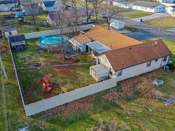 Nicely Updated Home on Marion's South Side! Spacious Open Concept Living & Dining Space. There are 3 Bedrooms & 2 Full Bathrooms. Kitchen is recently upgraded and comes fully equipped with all appliances that remain, granite tiled counter tops, & ceramic flooring. Split Floor Plan with Great Master Suite w/ recessed lighting - Private Master Bathroom adjoins with jetted garden tub & separate shower. Oversized 2 Car Attached Garage, 3 Storage Sheds, & Nice Enclosed Sun Room. Backyard features new vinyl privacy fencing perimeter. Make a splash this summer in the 27' round above ground pool (3 years old) - you will also enjoy the "Tiki Bar" & Outdoor Shower. Single Layer Roof New in 2012. Two Stage GFA Furnace New in 2019, New Carpeting in 2020. Whole house exterior surveillance system. Vinyl Replacement Windows. New Main Water Line. Additional Blown-in Insulation for efficiency. All of the big ticket items have been done!